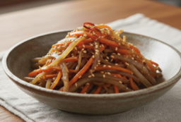 きんぴらごぼうや煮物料理に幅広くお使いいただけるように、食べやすいようにささがきにし、急速冷凍しました。